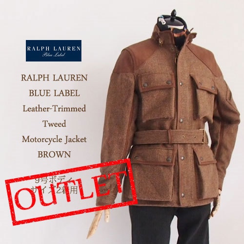 【SALE】【OUTLET SALE】【BLUE LABEL by Ralph Lauren】ラルフローレン ブルーレーベル レザートリム ツイード モータサイクル ジャケット/BROWN