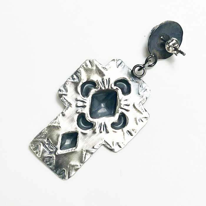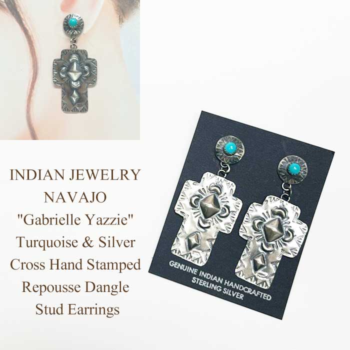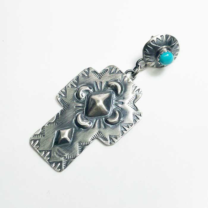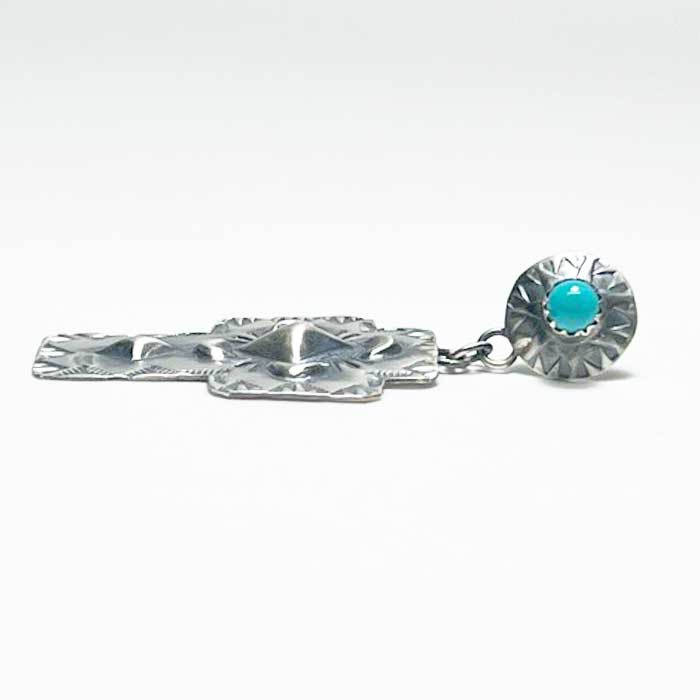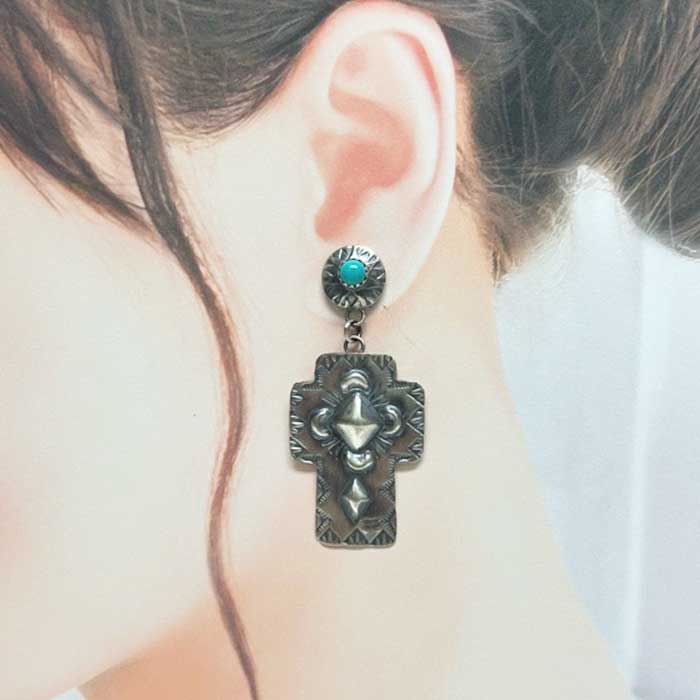 インディアンジュエリー ナバホ族 "Gabrielle Yazzie" ターコイズ シルバー クロス スタッド ピアス